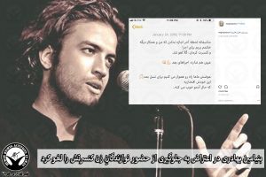 او در قسمت دیگری هم نوشته است: «هر وقت با حضور بانوان هنرمندمون روی استیج ما موافقت شد و اعلام شد که هستند و بعدا به این صورت روز آخر یا لحظه آخر مخالفت شد ما به احترام زمان و برنامه زندگی زنان سرزمینمون اون برنامه رو کنسل خواهیم کرد.»