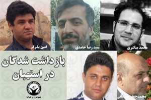 به گزارش خبرگزاری هرانا، ارگان خبری مجموعه فعالان حقوق بشر در ایران، طی هفتهی گذشته ۵ فعال سیاسی و مدنی اصلاحطلب در شهرستان استهبان پس از برگزاری یک نشست در این شهر و در پی سخنان تند و تهدیدآمیز رییس دادگستری، دادستان و امام جمعه این شهر در خطبههای نماز جمعه، توسط ماموران اداره اطلاعات سپاه بازداشت شدهاند.