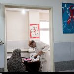 کنار ساختمان سوئیتهای ملاقات خصوصی، بهداری زندان قرار دارد که پر از همهمه و هیاهوست. هفت هشت نفری میشوند که چادرهاشان را بهدندان گرفتهاند و روی صندلیهای آبی نشستهاند تا پزشک بهداری بهنوبت ویزیتشان کند و برایشان نسخه بپیچد. با اینکه هر روز کنار هم هستند، باز هم فرصت حرف زدن با یکدیگر را از دست نمیدهند تا از دردها و آخرین گفتوگوی تلفنیشان با خانواده و فرزندانشان برای هم تعریف کنند.